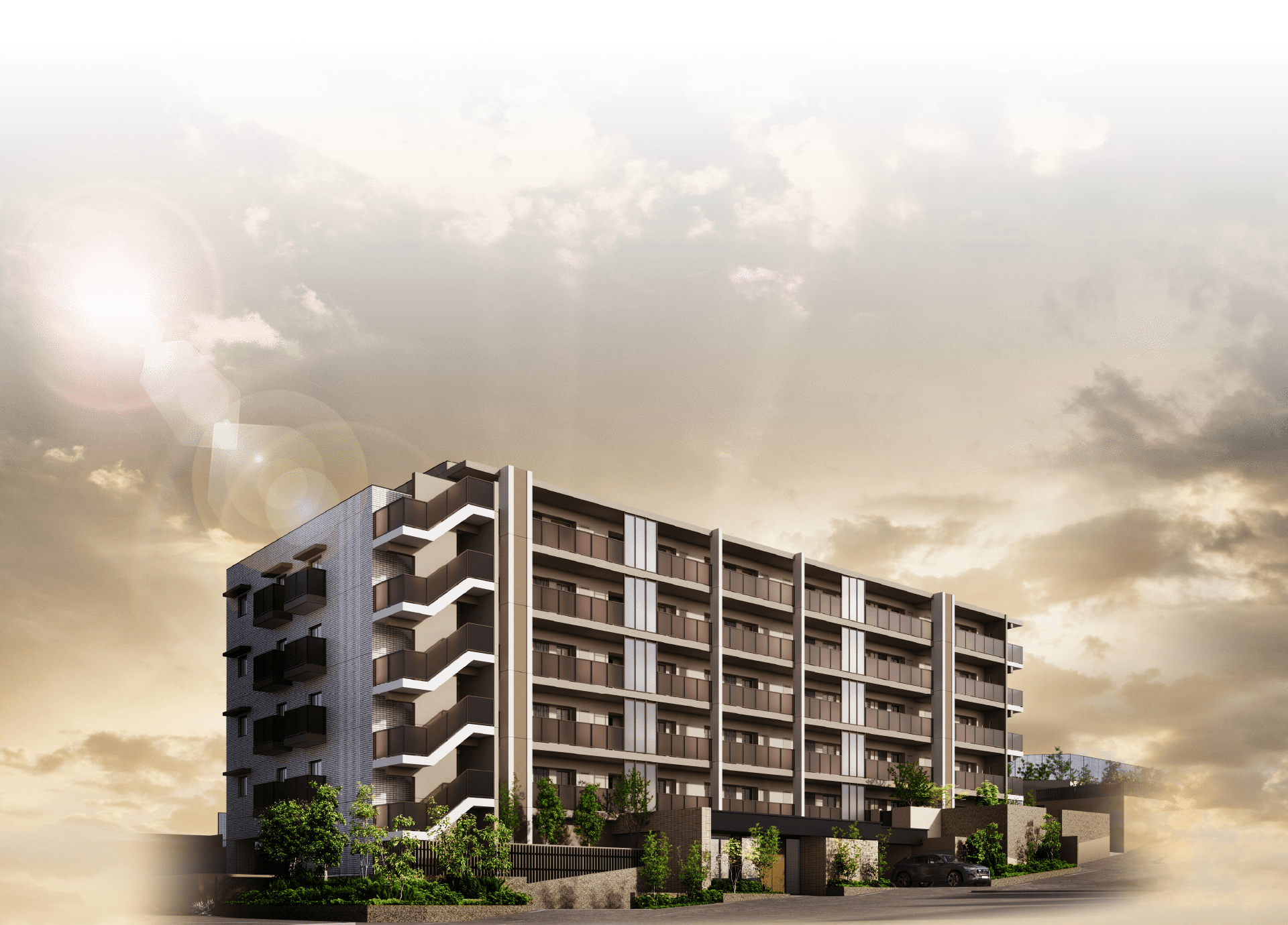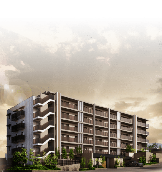 ※掲載の外観完成予想CGは、計画中の設計図書に基づいて描き起こしたもので、外観・色彩等は実際とは異なります。また、施工上の都合、行政官庁の指導及び改良などの為変更になる場合がございます。植栽は5月~11月頃を想定して描いておりますが、必ずしもこの状態にまで成育しているとは限りません。