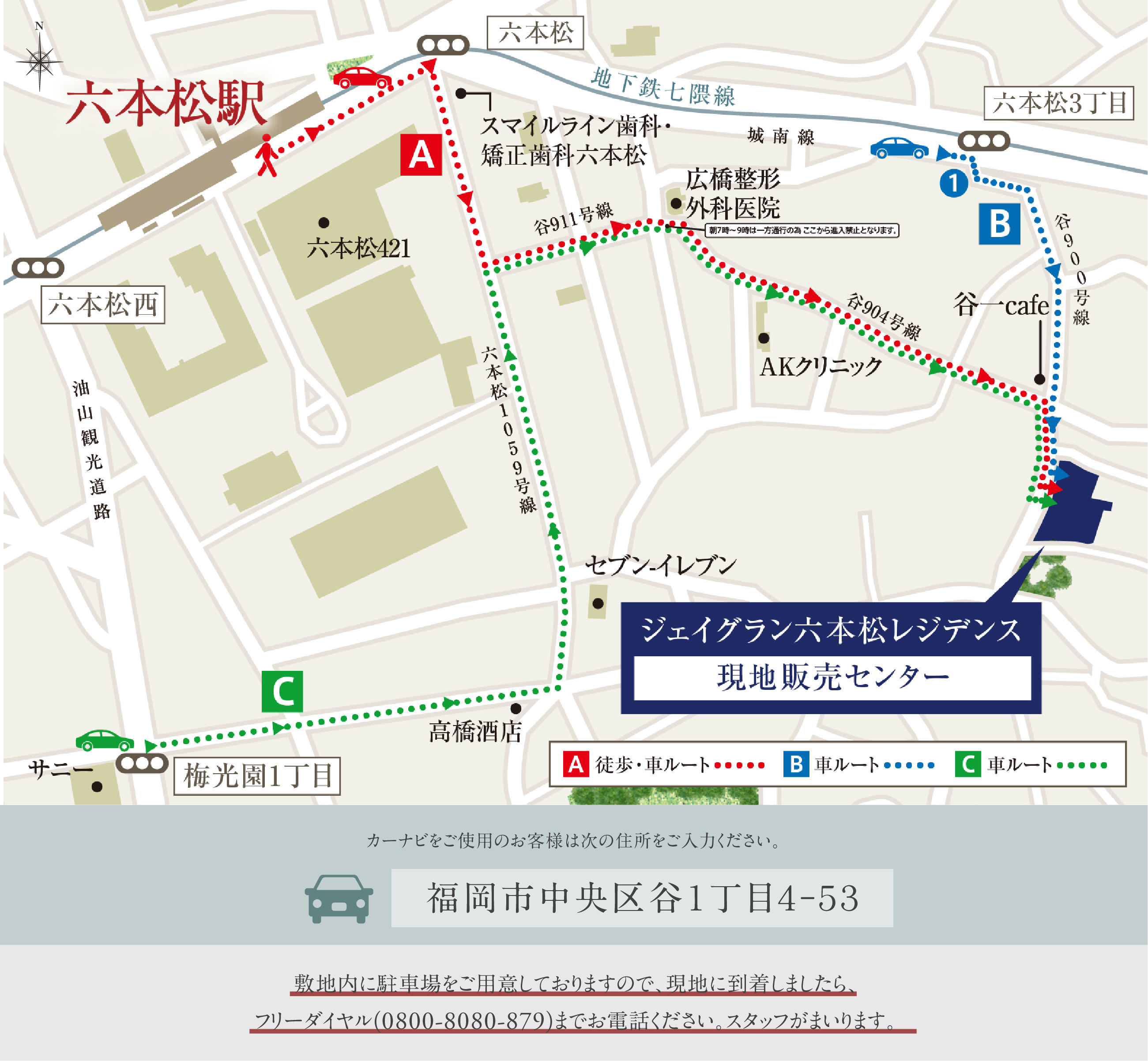 ※ご案内ルートには一方通行がございます。時間帯は7:00から9:00です。